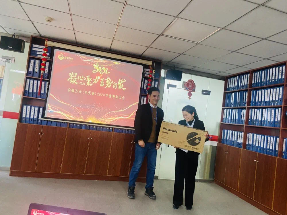 2月8號,安徽萬業(yè)(中天衡)在公司舉辦了2021年會盛典,并取得圓滿成功。我司黃總,中天衡王所參加此次活動并在會上致辭。 第一篇章 2020總結(jié)暨2021工作規(guī)劃 活動開始時,隨著黃總的登臺致辭,年會正式拉開了帷幕,首先黃總對公司2020年疫情之下逆勢而上取得的豐碩成果予以肯定,對長期以來支持萬業(yè)的合作伙伴、辛勤工作的全體員工,致以熱切的慰問和感謝并送上了新春的祝福。黃總表示公司將在2021年繼續(xù)加快企業(yè)多元化發(fā)展的步伐,為企業(yè)帶來新的發(fā)展契機(jī)。 隨后,各部門負(fù)責(zé)人開始了他們的年度匯報,總結(jié)2020年自己部門的不足與成果,暢談2021各團(tuán)隊(duì)目標(biāo)業(yè)績,發(fā)展使命。 第二篇章 表彰大會與年終獎頒發(fā) 接著,迎來了最令人激動人心的年終獎頒發(fā)環(huán)節(jié),在眾人期待的目光中,黃總向各位員工表現(xiàn)派發(fā)年終獎勵,這是企業(yè)對大家誠摯的祝福,也是對全體員工的工作成績的認(rèn)可。 第三篇章 抽獎 年終獎的頒發(fā),慷概激昂、振奮人心,全體員工歡聲笑語,為人們呈現(xiàn)出新春的活力與美好。同時,中間穿插的抽獎環(huán)節(jié)更是把年會晚宴的現(xiàn)場氣氛推向了最高潮,松下吸塵器、黛珂水乳套裝、三明治機(jī)等重磅好禮一一送出,激勵大家奮發(fā)向上。 律回春暉漸,萬象始更新