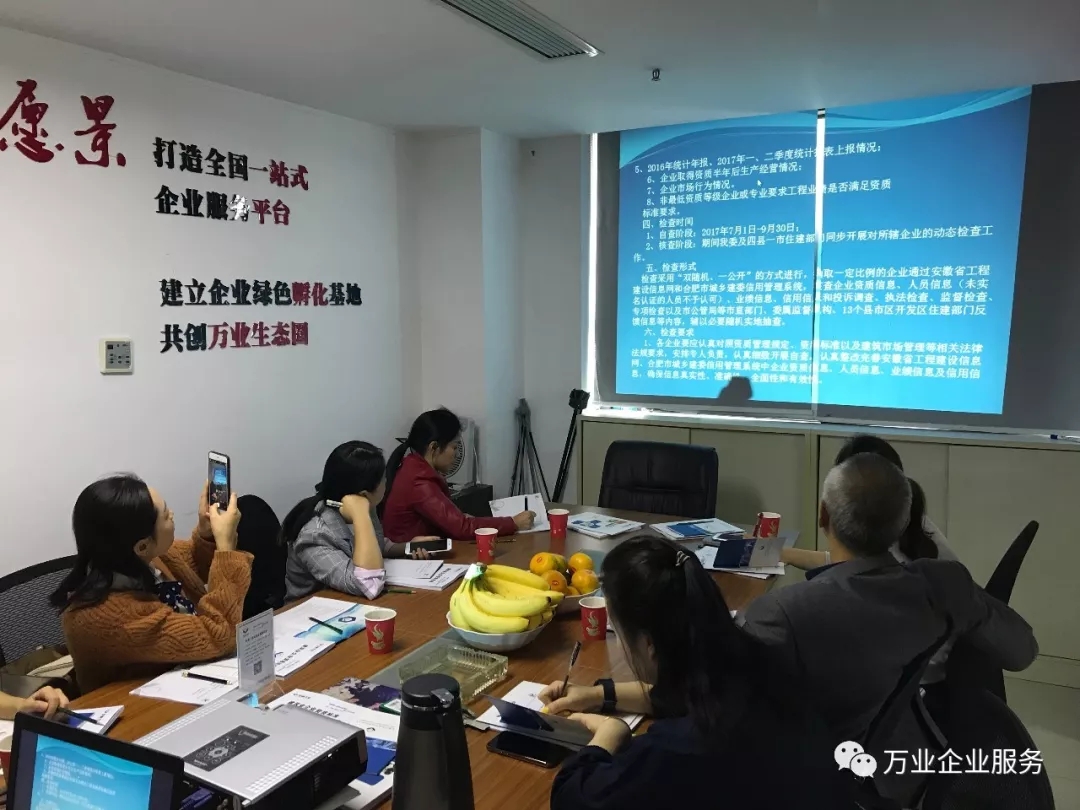 2018年第三季度數(shù)據(jù)上報工作已經(jīng)開始,萬業(yè)公司為各位建筑企業(yè)量身打造的"資質(zhì)維護及稅籌培訓(xùn)指導(dǎo)講座” 提供每家企業(yè)超受用的指導(dǎo)方案!于10月12日下午,安徽萬業(yè)企業(yè)管理有限公司成功舉辦第三季度資質(zhì)動態(tài)維護座談會!會議邀請了合肥建筑行業(yè)同仁,分享大家最關(guān)心的問題:資質(zhì)日常維護如何做?動態(tài)審核重點在哪里?怎樣合理規(guī)劃稅籌?