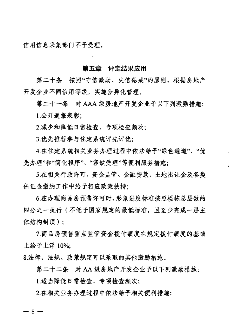 為繼續(xù)推進行業(yè)信用體系建設(shè),房地產(chǎn)開發(fā)相關(guān)部門宜進一步深化信用管理,積極探索開發(fā)企業(yè)信用評價結(jié)果的使用,引導開發(fā)企業(yè)積極創(chuàng)優(yōu),提高房地產(chǎn)開發(fā)企業(yè)誠信經(jīng)營意識,鼓勵開發(fā)企業(yè)走責任地產(chǎn)、品質(zhì)地產(chǎn)之路,為社會提供更好的產(chǎn)品和服務(wù)。